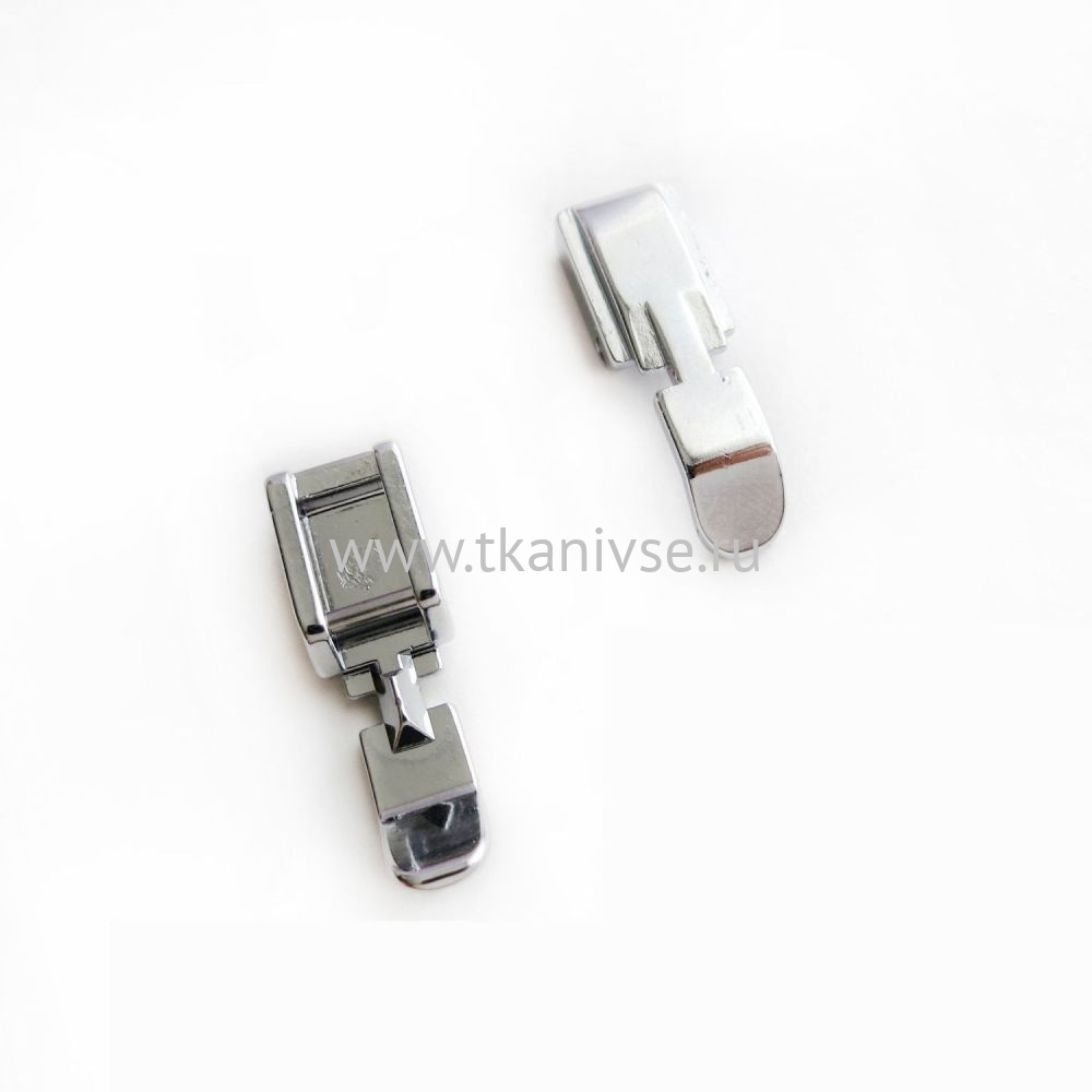 Лапка узкая молнии используется для вшивания различных застежек, молний, канта и для пришивания более толстой выпушки, включая большие шнуры.
